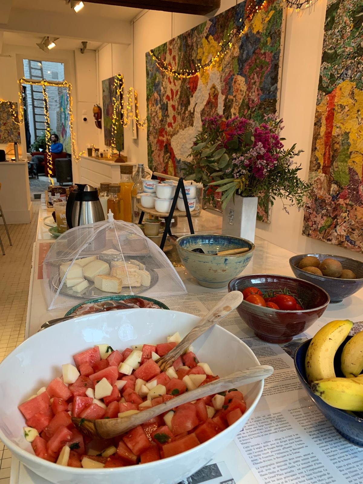 Nous vous proposons un buffet gourmand et généreux, composé de fruits frais de saison, céréales, yaourts, viennoiseries et pains frais.