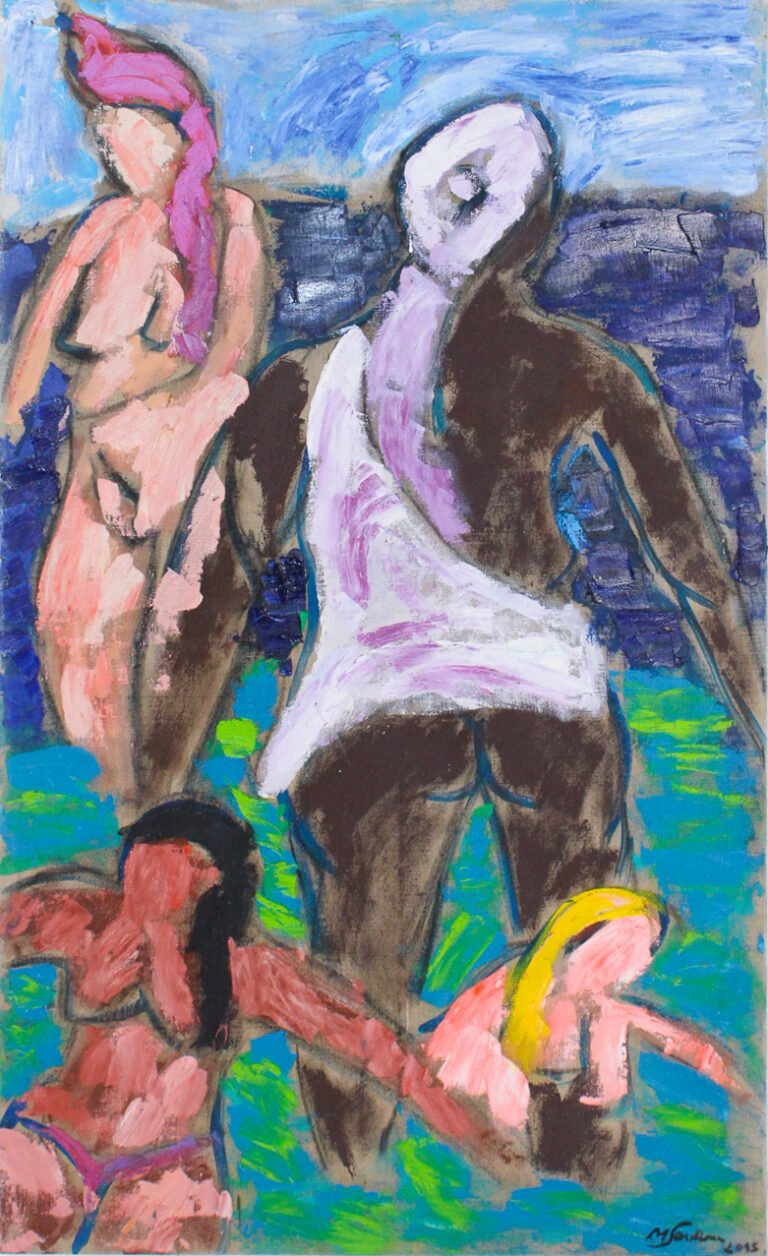 Marc Sardina, 2023, Nu de dos sur la plage, acrylique sur papier, H.65 ; L.50.