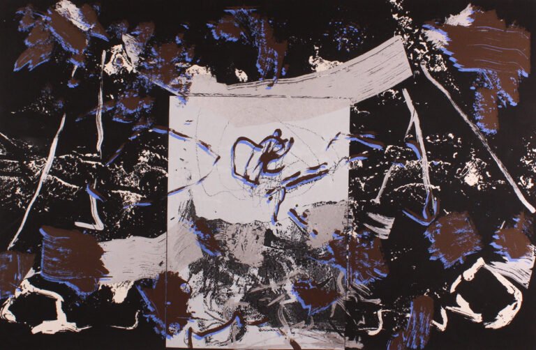 On note la présence d’un collage sur certaines lithographies. Charpentier les a avant tout intégrés par “souci de rapidité”, mais cette pratique a finalement pris plus de profondeur. À travers l’usage du collage, le peintre ancre ses compositions abstraites dans un élément concret, réel, comme pour leur introduire un point d’accroche.